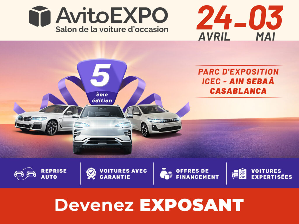 Avito Expo a déjà prouvé son efficacité lors des trois premières éditions à Casablanca et Marrakech. Rejoignez un événement qui bénéficie d’une forte notoriété et d’une reconnaissance croissante dans l’écosystème automobile.